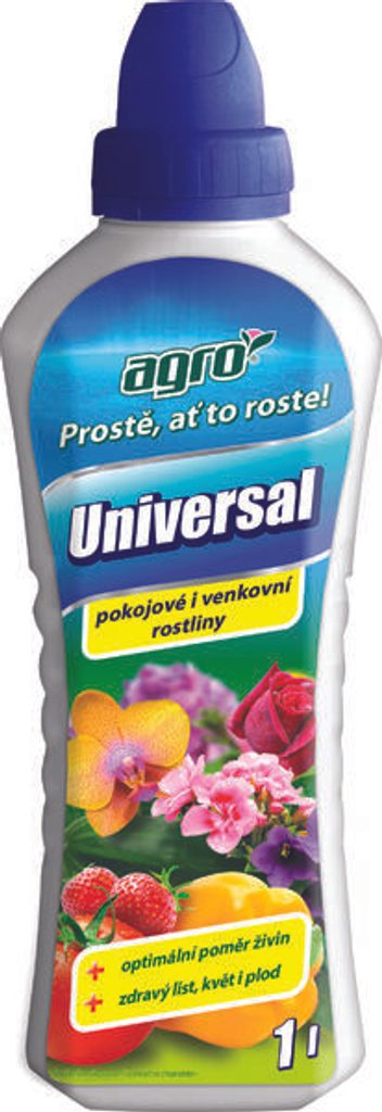 Agro UNIVERSAL je kvalitní univerzální kapalné hnojivo vhodné pro veškeré pokojové, balkónové, terasové květiny i ostatní zahradní rostliny. Toto minerální hnojivo je bohaté na organické a minerální látky a stopové prvky. Díky svému složení dodáva rostlinám kvalitní výživu pro správný zdravý růst, bohaté kvetení rostlin a tvorbu listů.