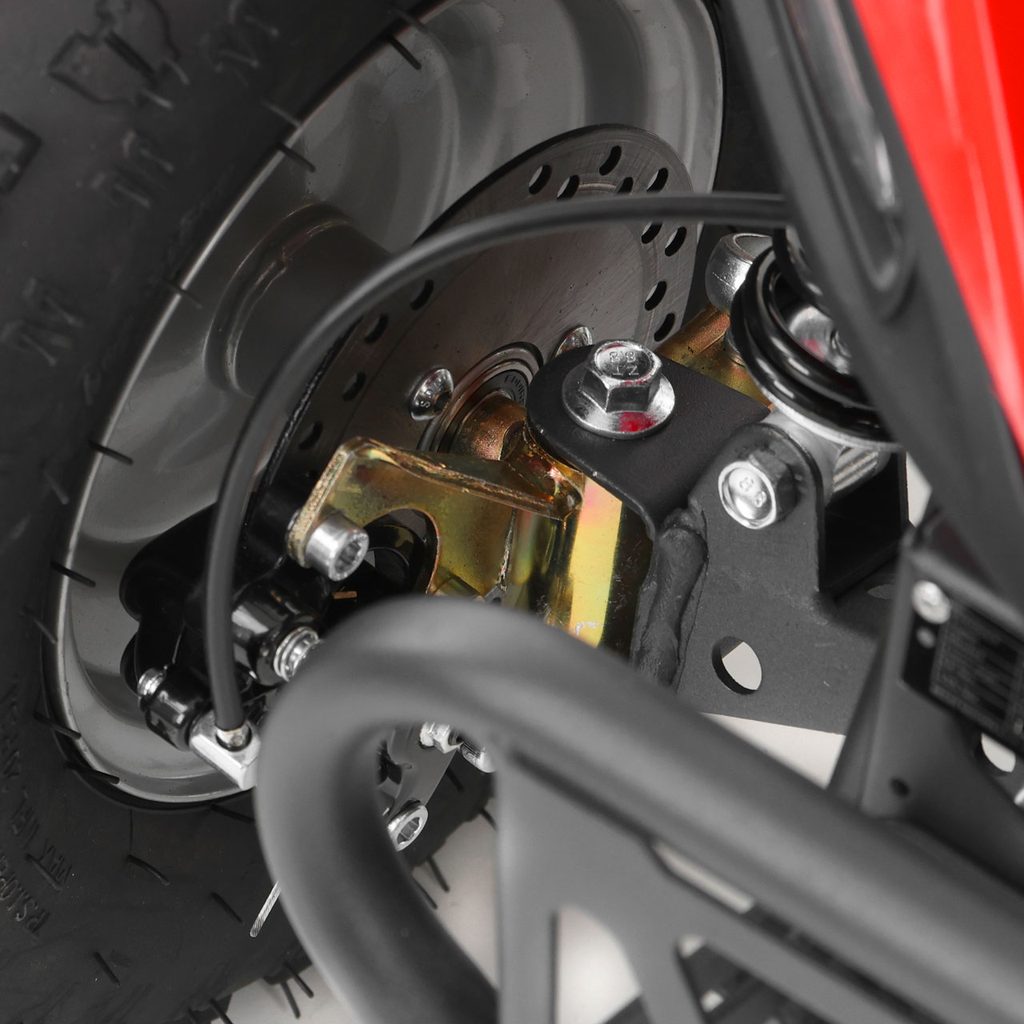 S 3 rychlostmi a zpátečkou si můžete přizpůsobit jízdní styl a jednoduše manévrovat. Kotoučové brzdy dodávají větší kontrolu nad pohybem a zajišťují rychlé a bezpečné zastavení. K dispozici je také klíček k omezení rychlosti, což je užitečné pro začátečníky nebo mladší jezdce.