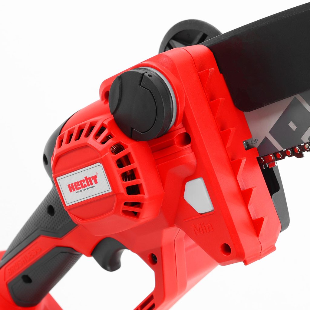 HECHT 9919 je lehká a snadno ovladatelná akumulátorová řetězová pila, která se stane nepostradatelným pomocníkem při údržbě zahrady, prořezávání ovocných stromů nebo tesařských pracích. Díky své kompaktní velikosti umožňuje pohodlnou práci jednou rukou i v hůře přístupných místech mezi větvemi, kam se s běžnou pilou nedostanete. Je vybavena kvalitní vodící lištou o délce 15 cm a bezpečnostním krytem řetězu, který chrání uživatele před odletujícími pilinami a náhodným kontaktem s horní částí řetězu.