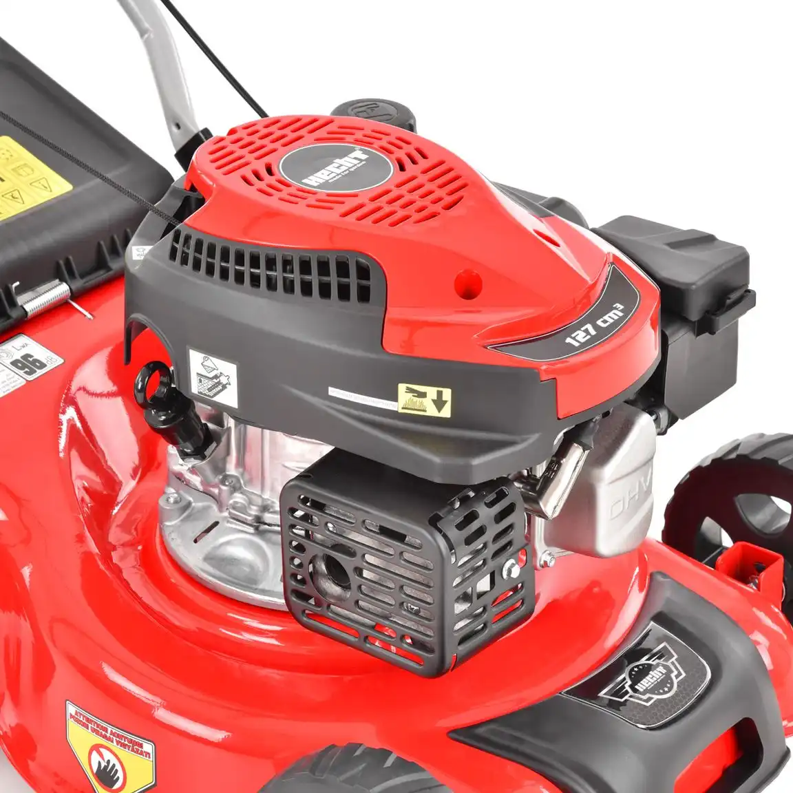 - Spolehlivý čtyřtaktní motor s dostatečným výkonem pro pravidelnou údržbu menších a středně velkých zahrad.