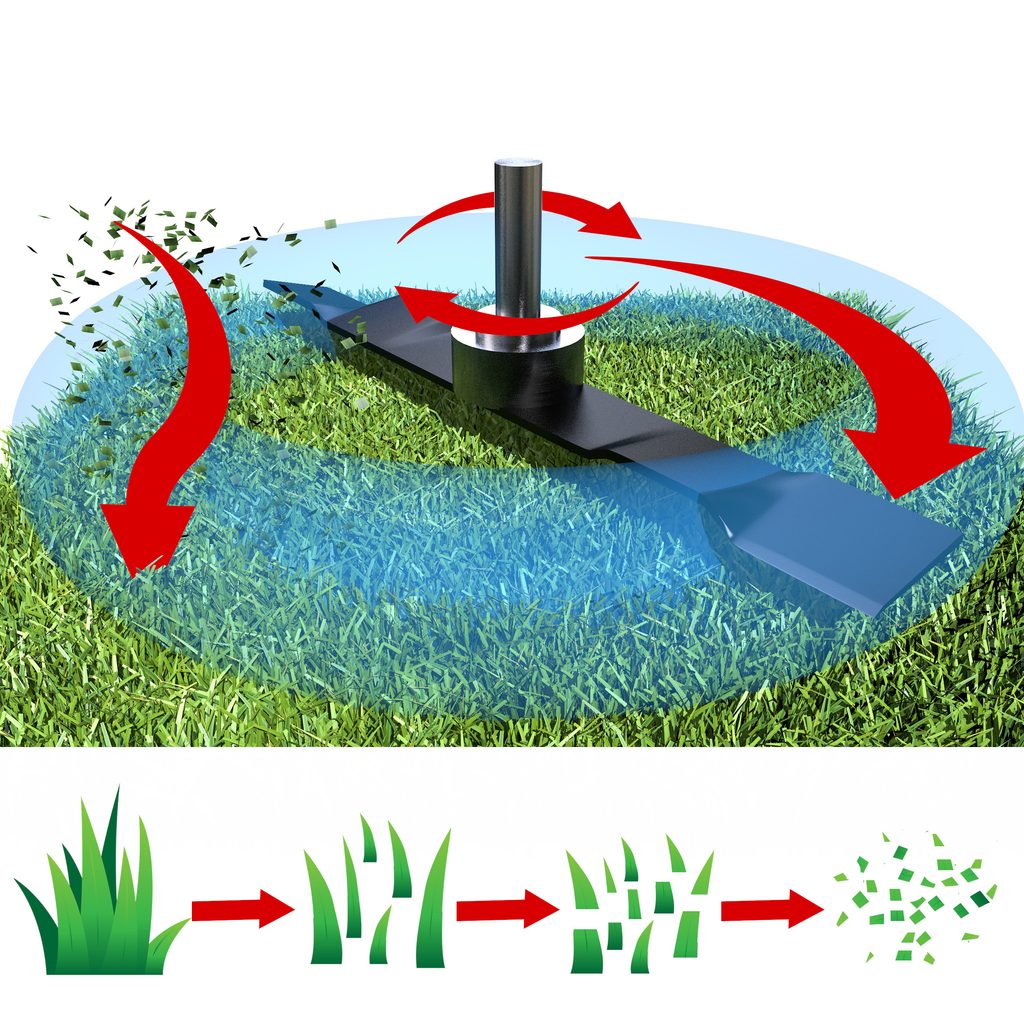 Součástí výbavy je také mulčovací klín, který umožní sekání trávy na jemné částečky. Ty se ukládají ke kořenům, kde slouží jako přirozené hnojivo a zároveň chrání trávník před vysycháním. Oproti běžnému posekání trávy tak získáte zdravější a hustší trávník bez nutnosti častého hnojení.