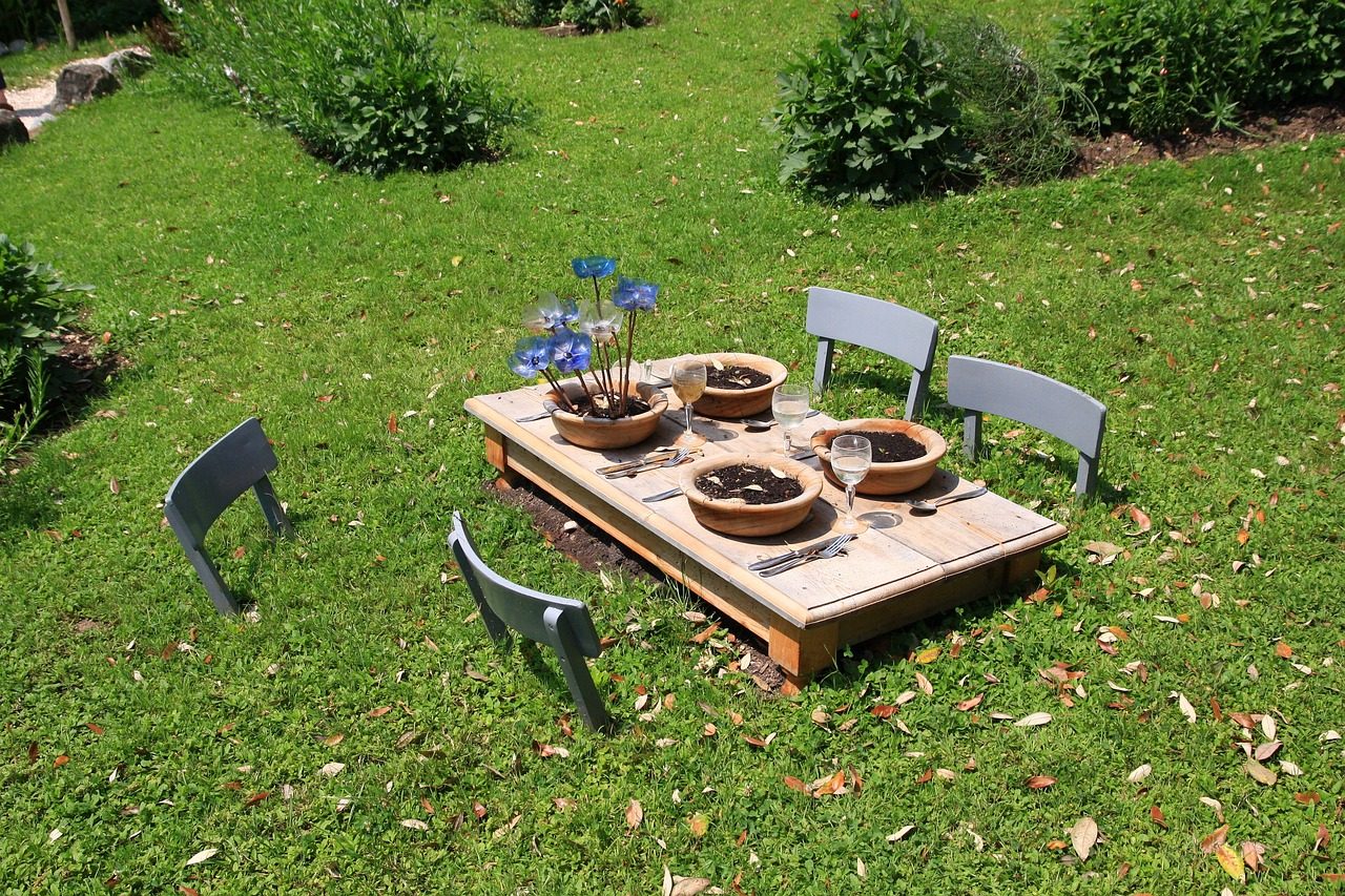 Pamatujte ale na to, že ani dosluhující zahradní nábytek by neměl stát jen tak v trávě. Nejen že by mu nesvědčil kontakt s vlhkou zemí, především by se mohly nohy snadno zabořit do měkké půdy a židle nebo lavice by se mohly převrátit. Navíc jestliže by stál jen tak v trávníku, museli byste jej při každém sekání přemísťovat. Proto je vhodné svůj tajný koutek opatřit nějakým pevným povrchem, ideální je samozřejmě nějaký typ dlažby, nebo třeba malá teráska vyrobená z palet.