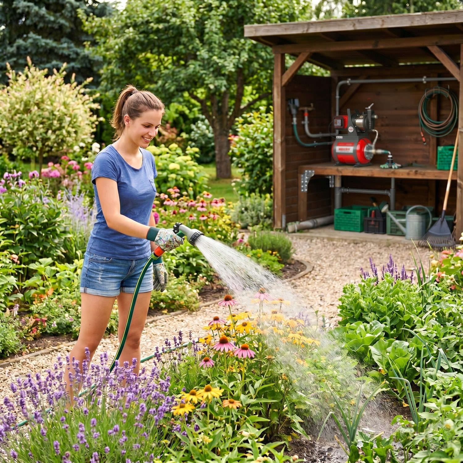 - Chcete, aby voda v hadici byla pod tlakem hned po otočení kohoutku? Kupte zahradní vodárnu.