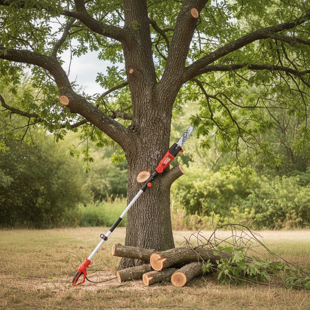 Díky teleskopické rukojeti nastavitelné od 200 do 280 cm dosáhnete vysoko do korun stromů. Pokud vezmete v úvahu výšku obsluhy, pohodlně lze ze země řezat větve až ve výšce okolo 4 m. Elektrický motor s příkonem 750 W umožní řezání silných větví. Pilu na konci tyče lze sklápět v úhlu až 40 °. Díky tomu snadno pilou dosáhnete na větve i v hustých korunách, kde by mohly ostatní větve vadit bezpečnému řezání.