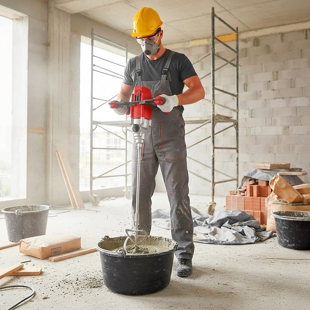 - Pro míchání stavebních materiálů (beton, malta, lepidla, omítky, sádra a další)