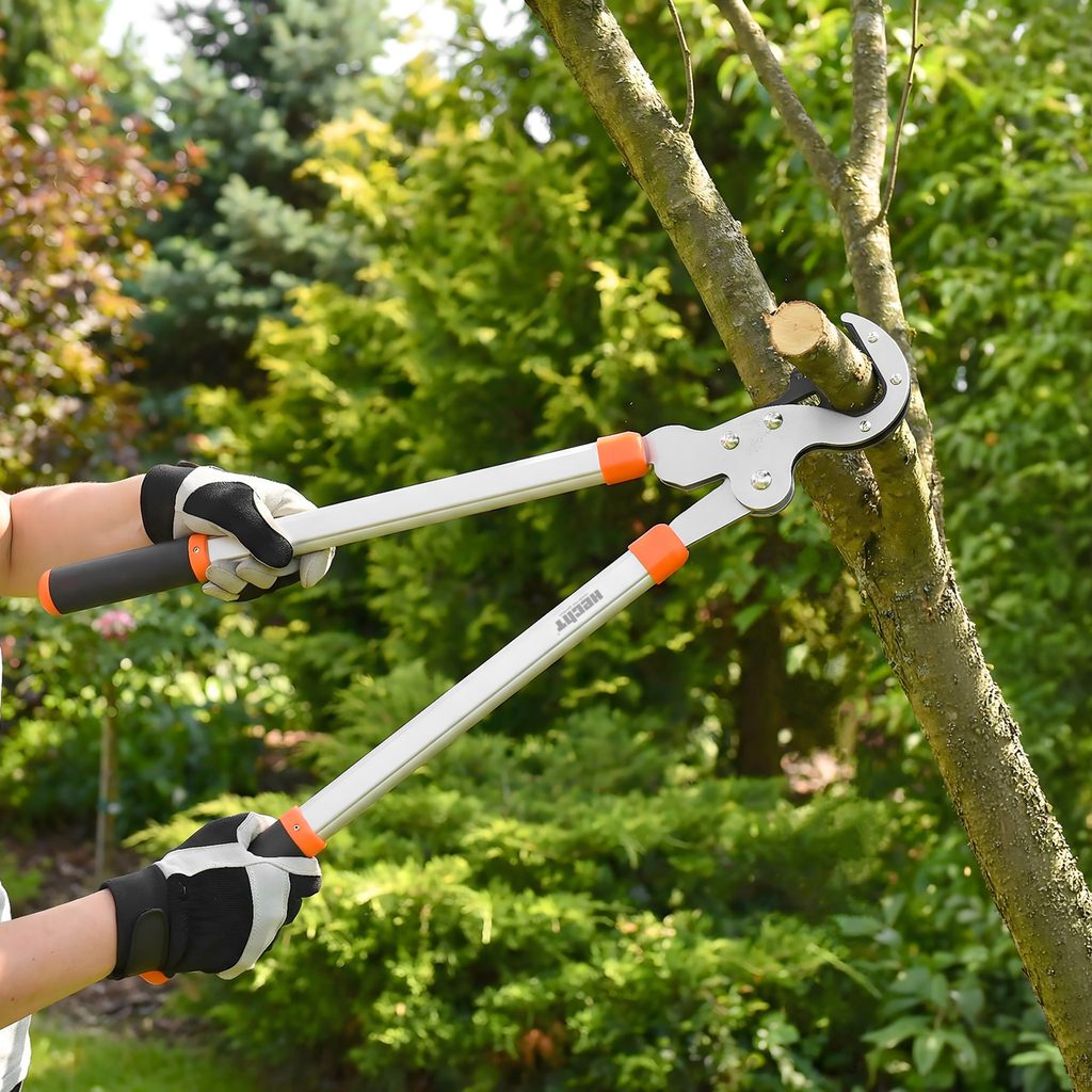 Celková délka nůžek je 790 mm, což poskytuje dostatečnou páku pro snadné stříhání silnějších větví bez nadměrné námahy. Dlouhá ramena zároveň umožňují lepší dosah do korun stromů nebo hustších keřů.