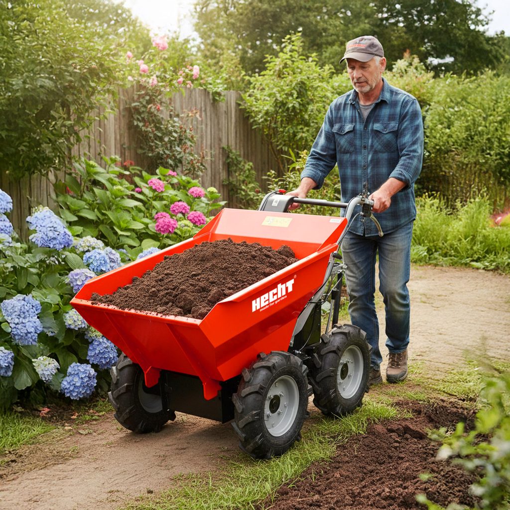 Transportér HECHT 2636 ušetří spoustu námahy všude tam, kde je třeba přepravit větší množství materiálu v hůře prostupném terénu. Poháněna jsou všechna kola, čímž je zajištěna skvělá prostupnost terénem, tu navíc zvyšuje i hrubý dezén pneumatik. Transportér je možné bezpečně používat ve svazích se sklonem až 12°.