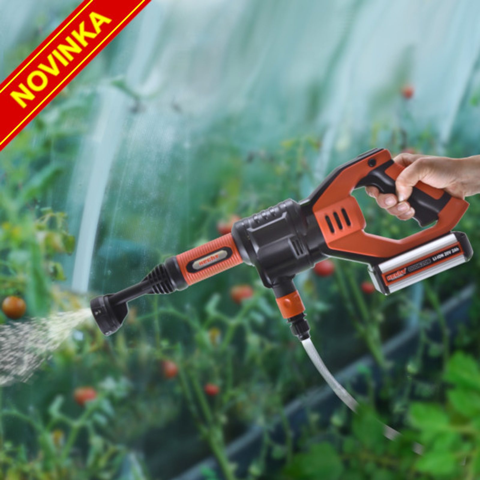 Nebaví vás tahat při zalévání těžké konve s vodou? A napadlo vás, že je možné zalévat tlakovou myčkou, která je navíc napájena z akumulátoru? Prostě jen připojíte hadici, druhý konec vložíte do nádrže s vodou, přepnete myčku do režimu zalévání a bez námahy pokropíte záhony!