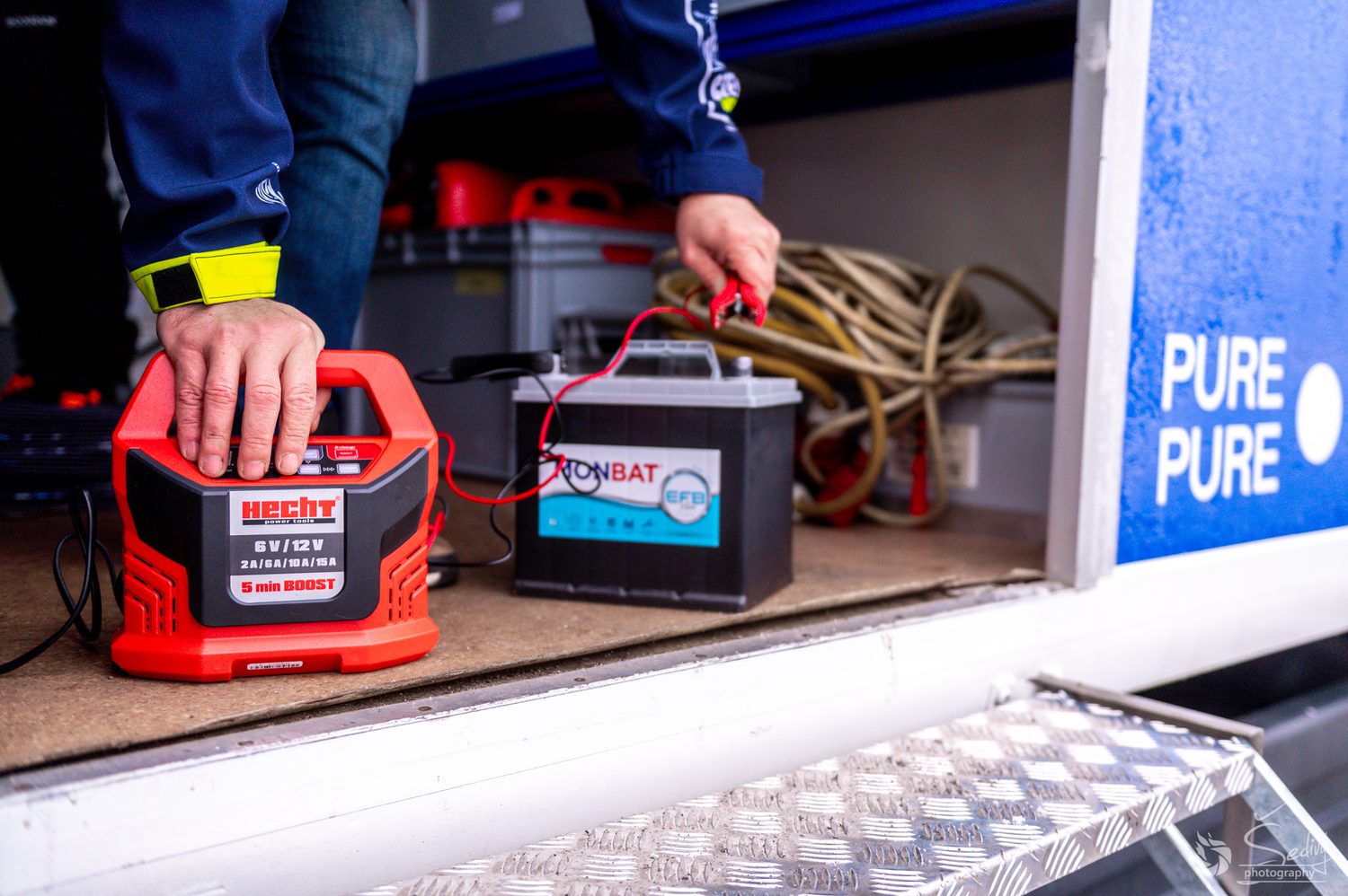 Do pouště si mimo jiné přibalila i akumulátorovou brusku HECHT 1320 z accu programu HECHT 1278 a nabíječku autobaterií HECHT 2013.