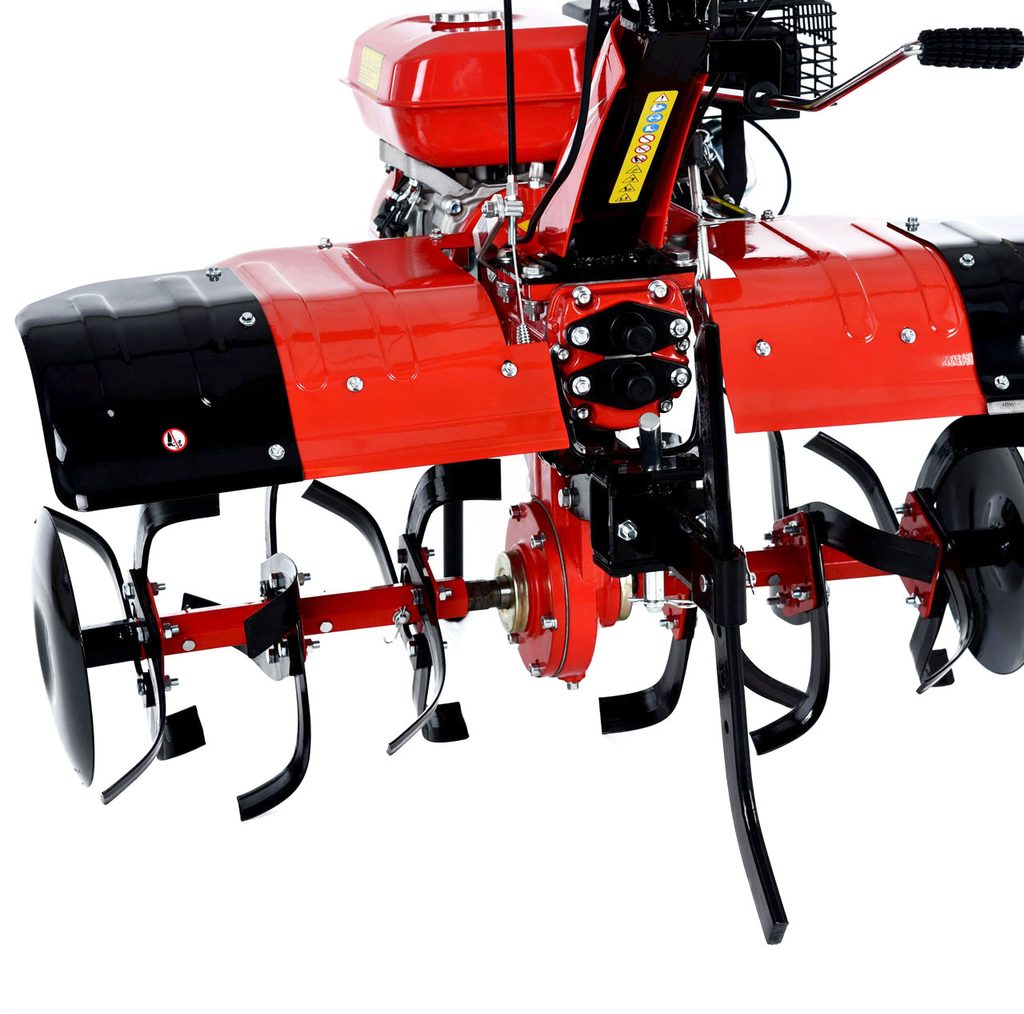 Součástí setu je zároveň sada tří párů kultivačních radliček. Jednoosý traktor tak během necelých pěti minut snadno přestavíte na výkonný kultivátor, s radličkami o průměru 33 cm. Volitelně jej můžete podle potřeby osadit pouze čtyřmi radličkami, kdy získáte pracovní záběr 81 cm, nebo šesti radličkami pro pracovní záběr 104 cm. V režimu kultivátoru je namísto oje vozíku osazena redukce pro uchycení ostruhy, která při práci v půdě slouží jako brzda. Zakoupením setu tedy získáte kompletní a plnohodnotný jednoosý traktor a kompletní kultivátor s třemi páry kultivačních radliček.