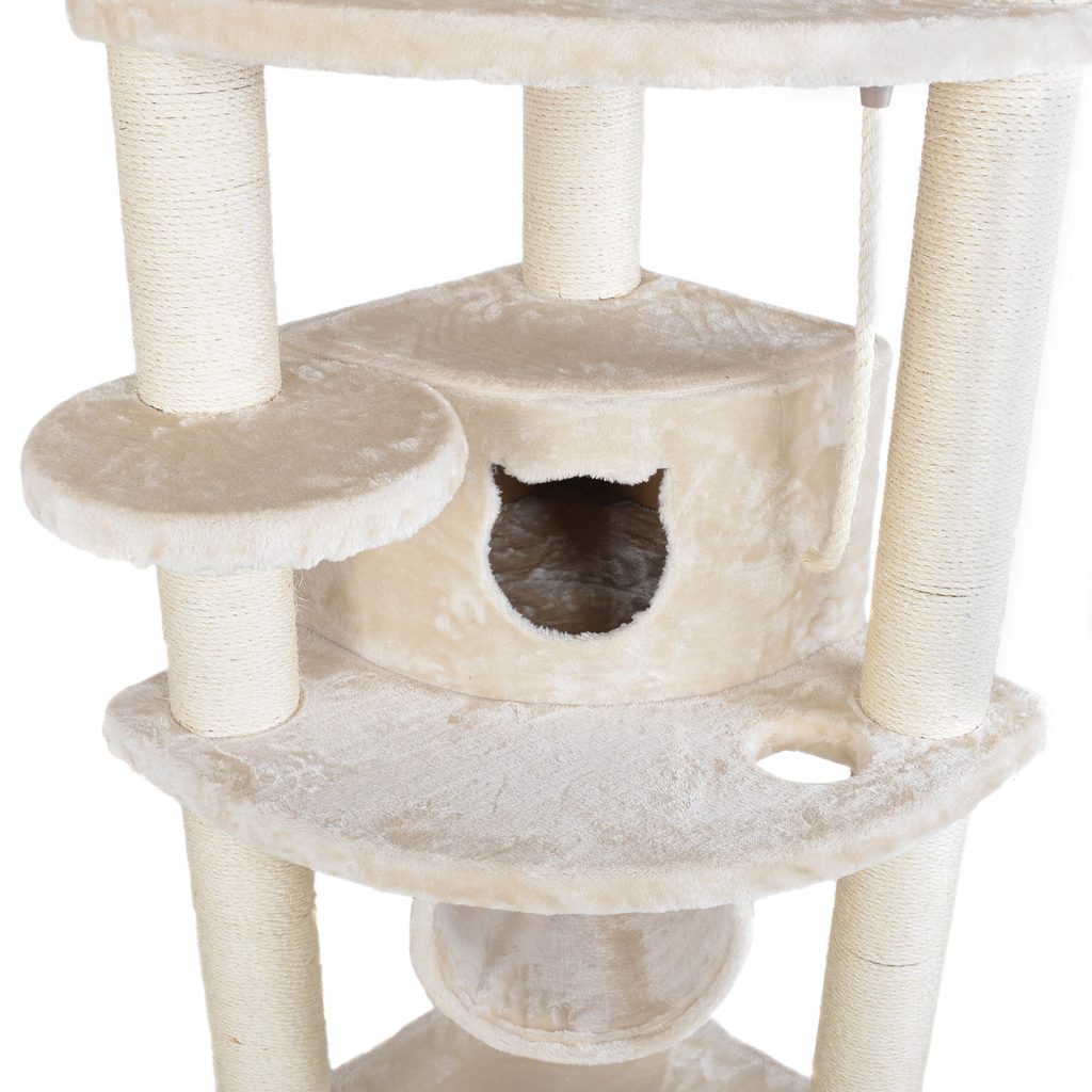 Škrabadlo a odpočívadlo pro kočky GARFIELD B (béžová). Zhotoveno z plyše a přírodního sisalu. Rozměry 65 x 65 x 190 cm.