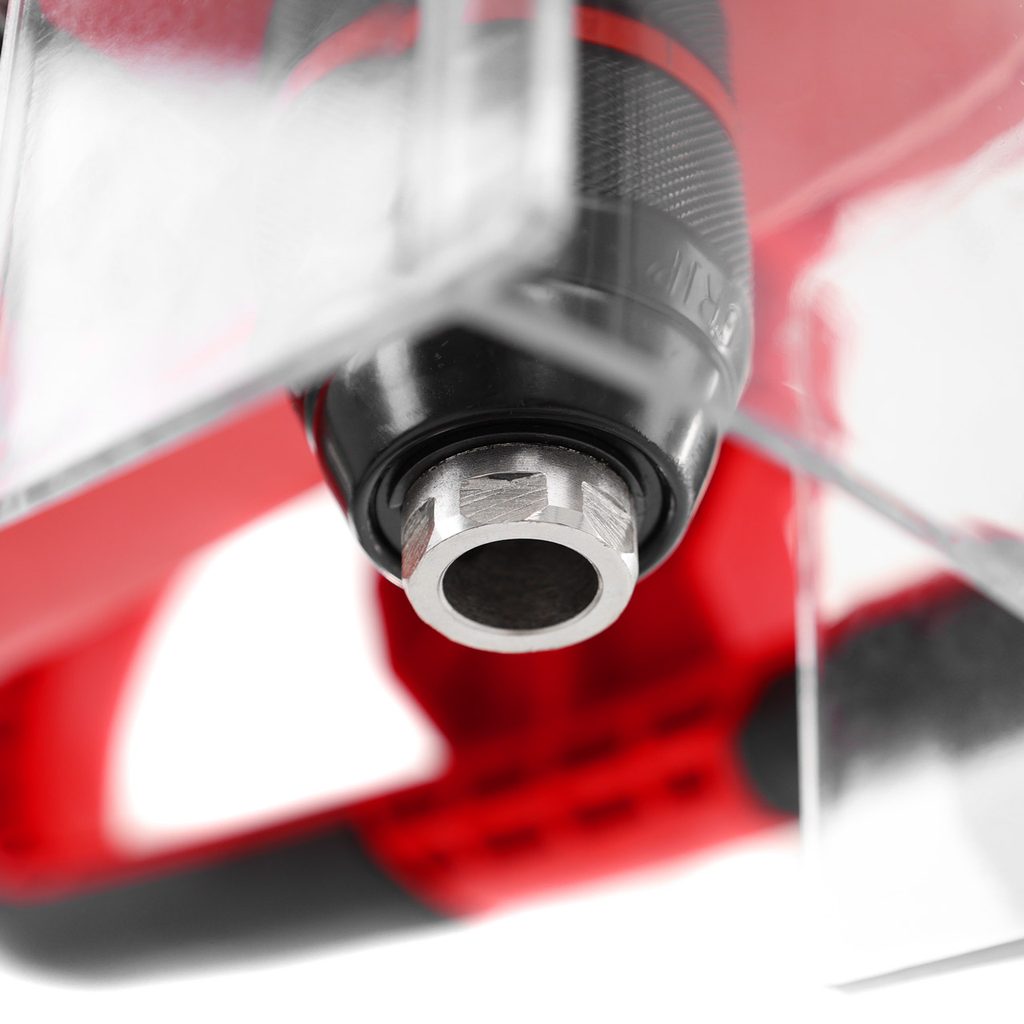 Jedním benefitů tohoto modelu je integrovaný laserový zaměřovač, který usnadňuje přesné umístění vrtaného otvoru. Maximální výška zdvihu vřetena 80 mm umožňuje hlubší vrtání bez nutnosti přenastavení materiálu.