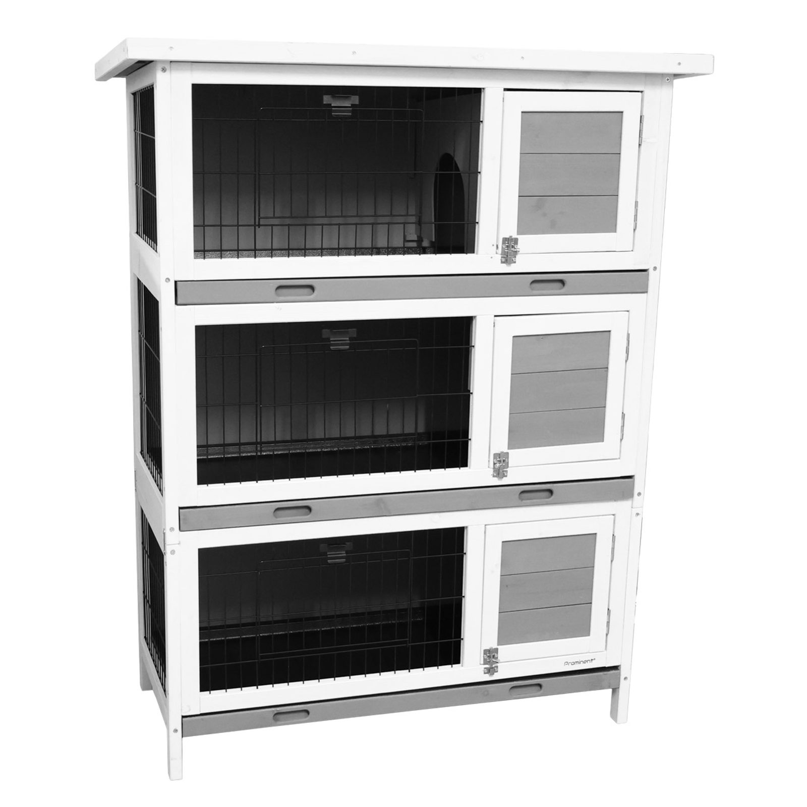 Třípatrová králíkárna Prominent Emily poskytuje dostatek prostoru pro chov králíků nebo jiných drobných hlodavců. Každé patro je vybaveno samostatnými dvířky pro snadný přístup a péči o zvířata. Díky tomu je údržba jednoduchá a chov hygienický.
