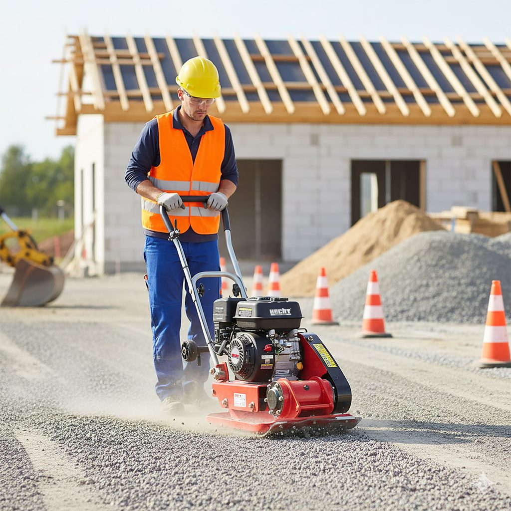 Vibrační deska s čtyřtaktním motorem HECHT OHV 196 cm3. Stroj je opatřen hutnící deskou o rozměrech 540 x 420 mm, která vibruje rychlostí 5500 úderů za minutu s odstředivou silou 13 kN. Hloubka stlačení je 30 cm. Rychlost pojezdu stroje je 22 m/ min. Hmotnost 78 kg.