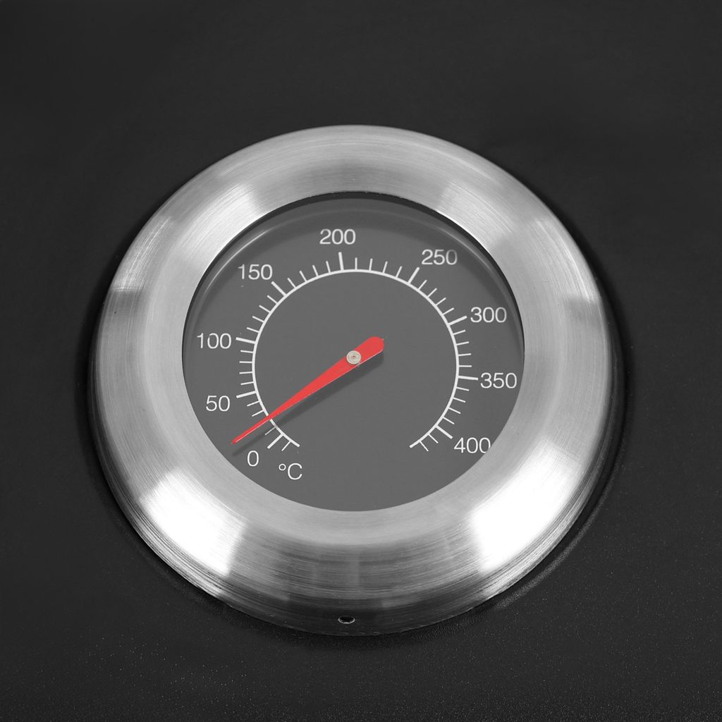 Litinový rošt zajišťuje dokonalé rozložení tepla a vysokou odolnost proti opotřebení. Integrovaný teploměr vám umožní snadno kontrolovat teplotu uvnitř grilu, zatímco transportní kolečka usnadňují manipulaci a přesun.
